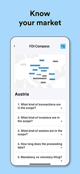 FDI Compass provides a practical overview of foreign direct investment screening regimes across Central Eastern and South Eastern Europe. The app complements this guide with mobile-friendly access to the same jurisdictional content and is regularly updated.