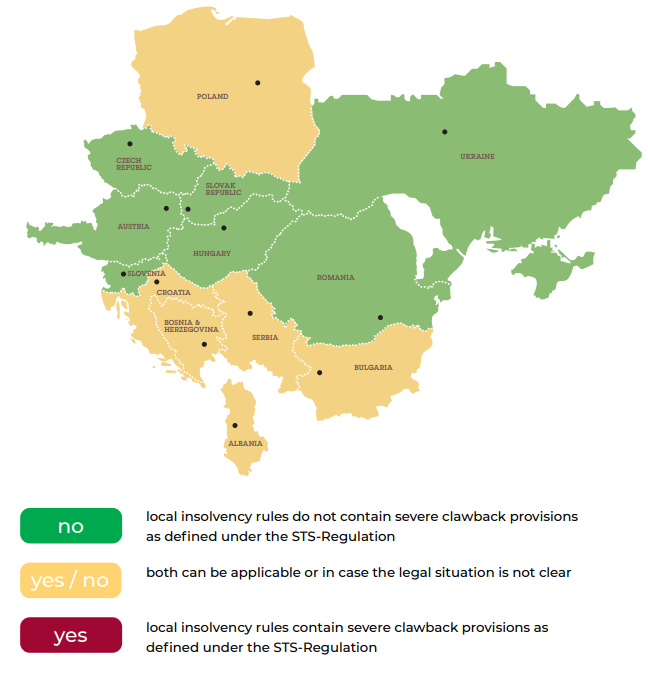 We analysed this STS-Criterion on a firm-wide basis regarding the existence (or lack thereof) of severe clawback provisions in the 13 jurisdictions of Central and Eastern Europe where Wolf Theiss operates (see map below).